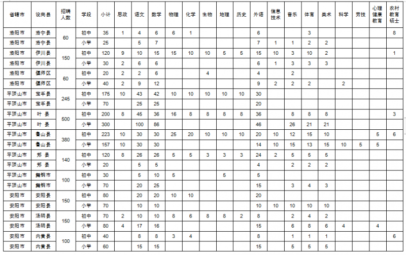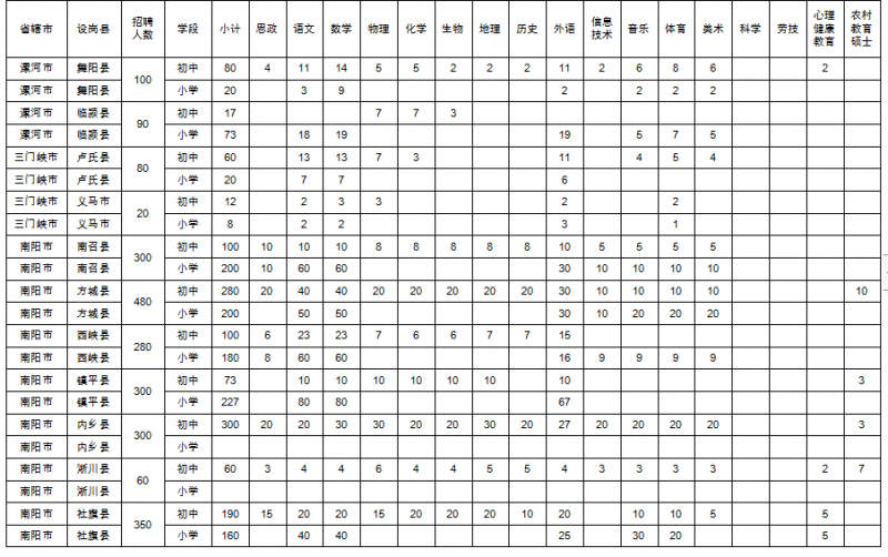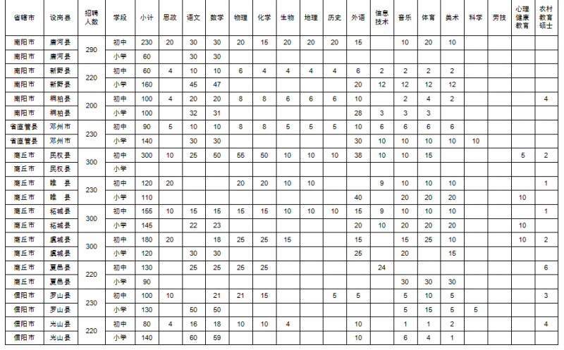 2021年全省共招聘特崗教師18000名。具體崗位設(shè)置參見《河南省2021年特崗教師招聘崗位設(shè)置》。
