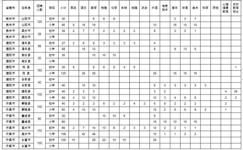 河南省2021年特崗教師招聘崗位設(shè)置