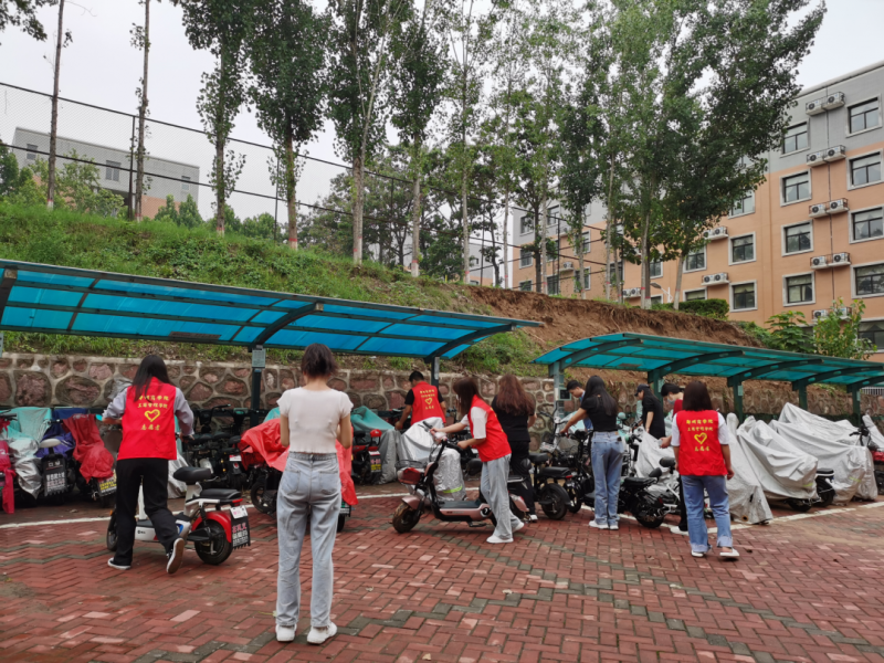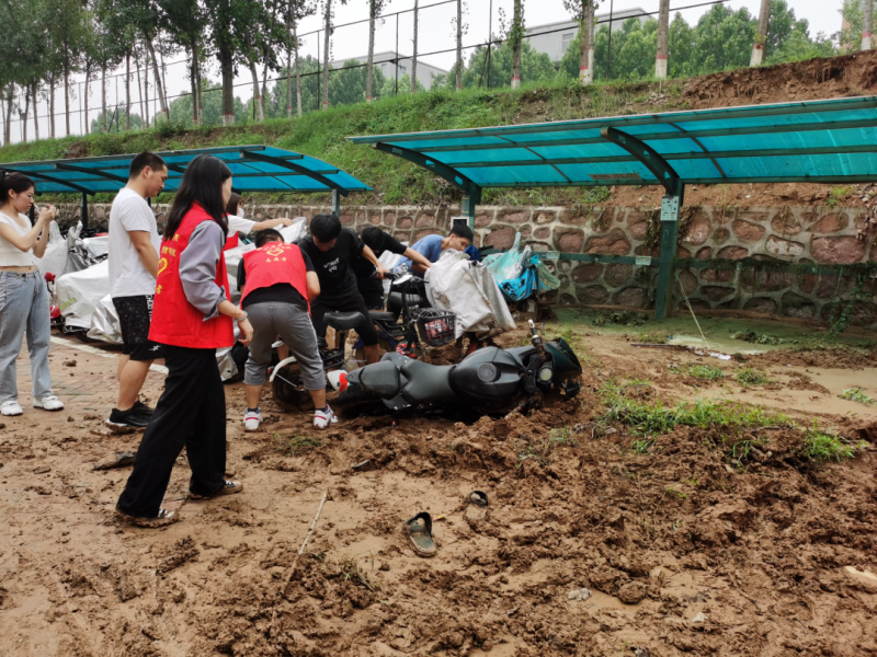 7月23日,建工學(xué)院黨委書記龐艷華、建工學(xué)院副院長(zhǎng)張燕燕帶領(lǐng)建工學(xué)院黨員先鋒隊(duì)對(duì)5號(hào)、13號(hào)、25號(hào)宿舍樓以及亞澤樓旁倒地電動(dòng)車進(jìn)行重新擺放、整理車衣并清掃雜草樹枝垃圾等。工作中大家積極投入,熱情飽滿,表示能夠?yàn)榫S護(hù)校園安全穩(wěn)定盡自己的一份力而感到驕傲和自豪,充分發(fā)揮了黨員的先鋒模范作用。此次雨后校園秩序恢復(fù)工作的有序開展,不僅維護(hù)了校園安全,同時(shí)為盡快恢復(fù)校園秩序提供了有力的保障。