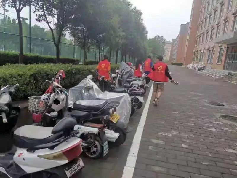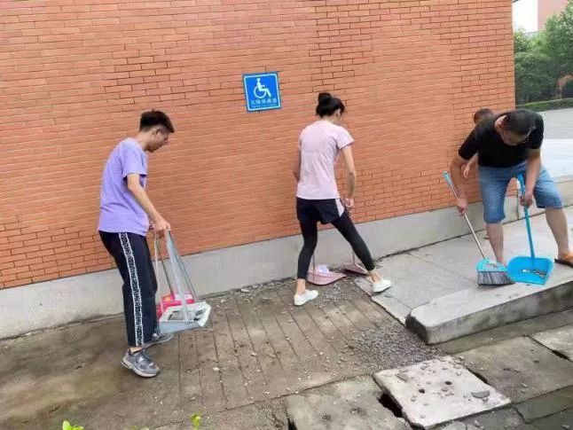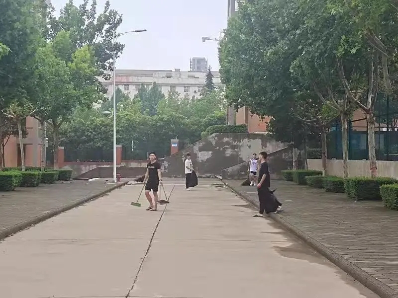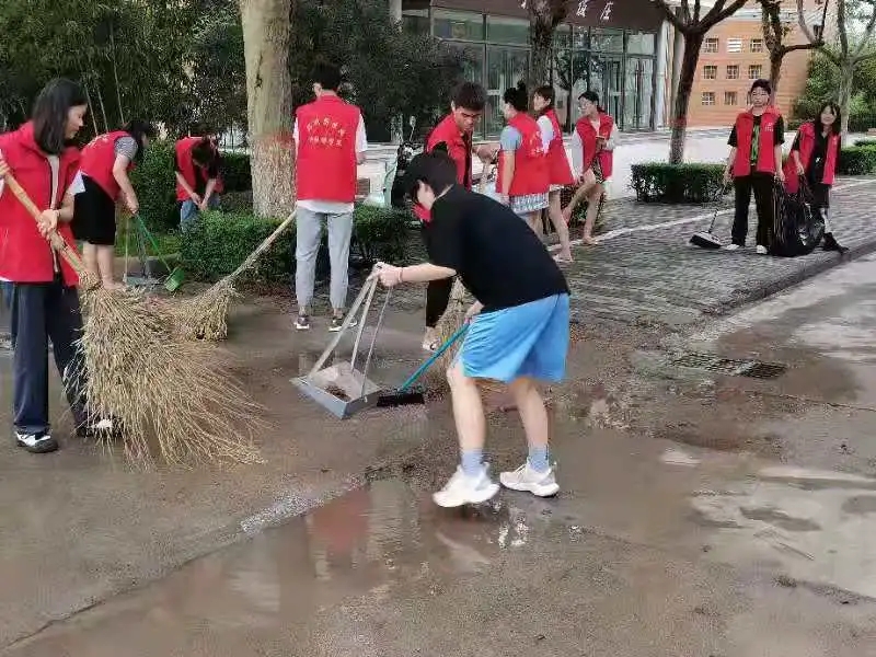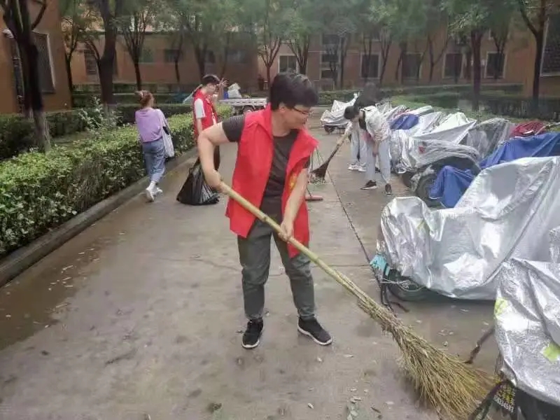 參與此次活動(dòng)的師生手持掃帚,垃圾袋等衛(wèi)生工具,前往外語樓,24號(hào)宿舍樓,北苑餐廳等地,對(duì)暴雨過后產(chǎn)生的樹葉、雜物等進(jìn)行及時(shí)清掃、整理及衛(wèi)生清潔消毒等工作。大家分工合作,卯足干勁,有的清掃路面、有的清理堵塞排水溝、下水道的落葉,有的幫忙把電車排列整齊,一個(gè)個(gè)或蹲或屈的身影奏響了一曲勞動(dòng)之歌,積極清掃校園的每一個(gè)角落。在大家的共同努力下,我校部分路段恢復(fù)了往日的潔凈,方便了師生的日常出行。