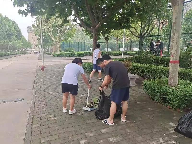7月23日下午,金貿(mào)學(xué)院部分留校黨員干部在黨委書記呂鵬的帶領(lǐng)下在外語樓至大禮堂主干道、5號(hào)宿舍樓、14號(hào)宿舍樓進(jìn)行安全隱患排查和團(tuán)體勞動(dòng)。在呂書記的帶領(lǐng)和指導(dǎo)下,大家進(jìn)行了負(fù)責(zé)區(qū)域的劃分,同學(xué)們分工明確、團(tuán)結(jié)協(xié)作,認(rèn)真地巡視檢查每一處角落,他們有的拿著大掃帚清掃落葉、有的在認(rèn)真撿拾白色垃圾、有的在用力拔除青草、為守護(hù)校園付諸行動(dòng)。同學(xué)們忙碌的身影、專注的姿態(tài)、流下的汗水成為校園里最靚麗的風(fēng)景線。在呂書記的率領(lǐng)下,經(jīng)過將近兩個(gè)小時(shí)的排查和打掃,大家順利完成整潔校園的安全排查和清理工作。