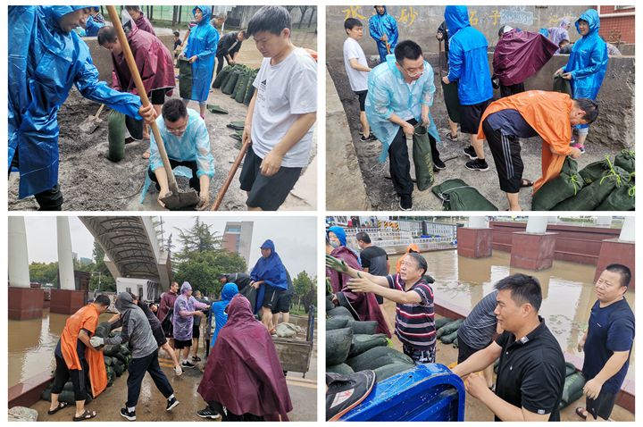 身體力行“辦實事”。在校校領導帶頭,主動深入基層查看防汛工作落實情況,幫助解決實際困難,推動學校防汛工作部署落實。7月22日下午,校領導帶領學校全體在校師生員工冒雨清理道路積水、雜物,疏通排水通道,共同裝沙袋,并將數(shù)百只沙袋順利運到學校南門口,為防御泄洪做好充分的準備,全校師生員工齊心協(xié)力守護校園“安全線”。