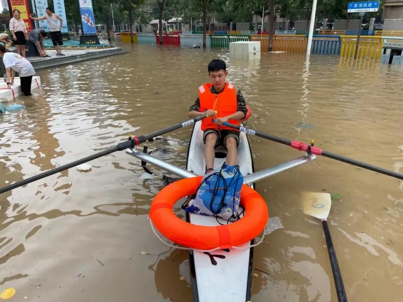 近日,因百年不遇的強(qiáng)降雨造成的洪水侵襲鄭州,綠城人民生命財產(chǎn)安全受到巨大威脅。鄭州阜外華中心腦血管醫(yī)院周邊因地勢低洼,導(dǎo)致方圓幾公里一片汪洋,該區(qū)域停水、停電。醫(yī)院告急!患者危急!鄭州大學(xué)體育學(xué)院學(xué)生2018級王匯波、2020級葛泰宇、王義建、孟子奧、旦晨旭一行以高度的社會責(zé)任感,運(yùn)用過硬的專業(yè)技能,分批攜帶雙人賽艇,火速前往受災(zāi)地點(diǎn)及周邊地區(qū)參與抗洪搶險。鄭州大學(xué)體育學(xué)院2000屆校友、河南省豐合水上俱樂部負(fù)責(zé)人程遠(yuǎn)林,提供了救援舟艇并前往劉江安置區(qū)開展水上救助工作。
