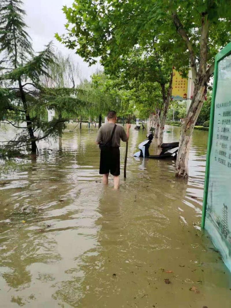 加強巡視確保安全。不間斷巡視校園各處險情及水位,在無任何防護裝備和器具的情況下,組織人員涉水巡查校園及教師周轉(zhuǎn)房區(qū)域水位。在教師周轉(zhuǎn)房樓下水中解答各位教師、家屬對校園周邊道路情況等疑問,安撫相關(guān)人員情緒。水退后及時清理東北門淤泥。