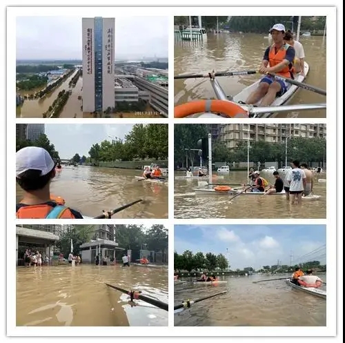 鄭州大學(xué)體育學(xué)院運動訓(xùn)練專業(yè)練習(xí)賽艇項目學(xué)生2018級王匯波和2020級葛泰宇、王義建、孟子奧、旦晨旭,利用過硬的專業(yè)技能,分批攜帶雙人賽艇,火速前往受災(zāi)地點及周邊地區(qū)參與抗洪搶險。鄭大體院2000屆校友、河南省豐合水上俱樂部負(fù)責(zé)人程遠(yuǎn)林,提供了救援舟艇并前往劉江安置區(qū)開展水上救助工作。