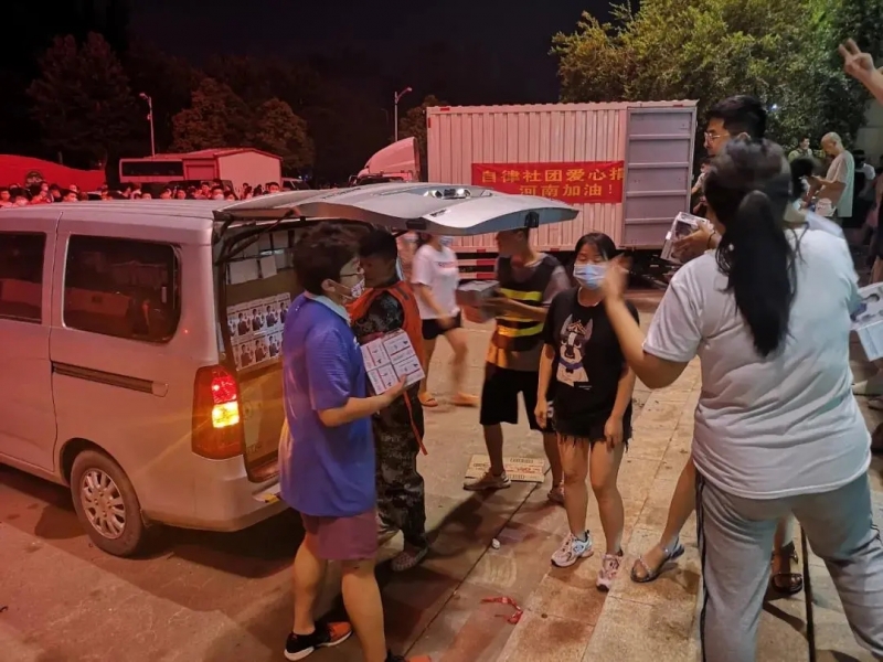 7月24日凌晨,河南財經(jīng)政法大學(xué)接到受災(zāi)地區(qū)物資求助信息,第一時間在家屬區(qū)開展愛心募捐活動,廣大教職工積極響應(yīng),經(jīng)過一天的募捐,共收集到4000余件衣物、280余雙鞋子、200箱牛奶及充電寶等物資,由志愿者對其進(jìn)行分類、打包、裝車,緊急發(fā)往新鄉(xiāng)、扶溝等災(zāi)區(qū)。