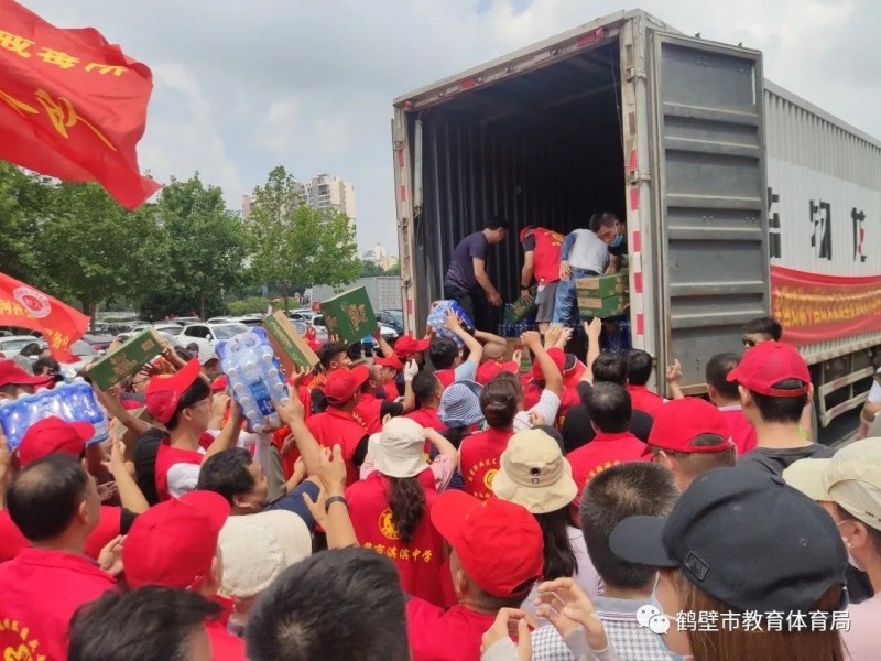 7月24日上午,全國婦聯(lián)中國婦女發(fā)展基金會馳援鶴壁市9輛車約200噸救援物資送達鶴壁市政府北門,市教育體育局50多名黨員志愿者踴躍參加裝卸工作,大家冒著酷暑和各機關單位的志愿者共同把一箱箱大米、方便面、食用油、礦泉水、火腿腸等救援物資,從車上卸下來,再轉裝到受災地區(qū)的物資接收車上,用實際行動為抗汛救災貢獻力量,為災區(qū)群眾奉獻愛心。
