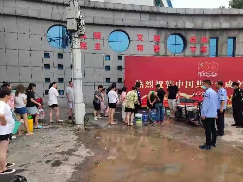 學(xué)校周邊小區(qū)受到暴雨影響大多停水停電。7月22日,在校門口值班的保衛(wèi)處職工得知附近居民用水困難這一情況后,主動(dòng)為居民解決難題。保衛(wèi)處副處長(zhǎng)馮峰第一時(shí)間向校領(lǐng)導(dǎo)匯報(bào),帶領(lǐng)員工們迅速接通水管引出校外,在東門和西門口設(shè)置接水點(diǎn),免費(fèi)為居民們提供自來(lái)水。這一舉措受到了附近居民的熱烈歡迎,得知消息的居民們紛紛帶著水桶等前來(lái)接水。大家在現(xiàn)場(chǎng)紛紛說(shuō)道:“黃科院真是太暖心了!”“這下我們用水可方便了!”還有的居民說(shuō):“黃科院老師和學(xué)生真幸福呀,這么多小區(qū)停水停電,你們這里一切正常,真好!”