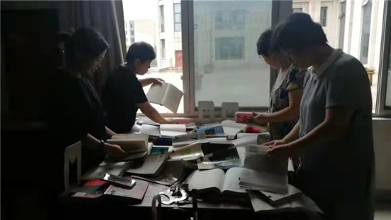 7月23日上午,圖書(shū)館流通部群里通知自愿去金河圖書(shū)館流通部打掃衛(wèi)生。該校幾位老師不怕臟,不怕累,用手當(dāng)鐵锨,徒手把這些粉漿撮到盆里。幾位老師接著清理被雨水浸濕的圖書(shū),并把這些書(shū)一頁(yè)頁(yè)翻開(kāi),晾在桌子上。這些人的無(wú)私奉獻(xiàn)、默默守護(hù),幾十萬(wàn)冊(cè)的圖書(shū)才免遭雨淋。