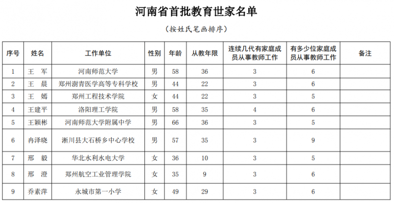 2.河南省首批教育世家名單
