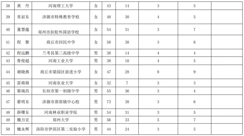 根據(jù)《教育部辦公廳關(guān)于開(kāi)展首批教育世家學(xué)習(xí)宣傳活動(dòng)的通知》(教師廳函〔2021〕13號(hào))和《河南省教育廳關(guān)于開(kāi)展首批教育世家學(xué)習(xí)宣傳活動(dòng)的通知》(教師函〔2021〕430號(hào))精神,經(jīng)個(gè)人申報(bào)、單位推薦、專家評(píng)審等程序,擬向教育部推薦開(kāi)封市第一師范附屬小學(xué)朱美琳等5個(gè)教育世家參加全國(guó)首批教育世家審核認(rèn)定,擬審核認(rèn)定河南師范大學(xué)王軍等50個(gè)教育世家為河南省首批教育世家,現(xiàn)將結(jié)果予以公示。