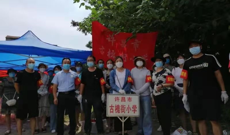 在現(xiàn)場,學(xué)校黨員志愿者耐心為社區(qū)群眾做好登記工作,并引導(dǎo)群眾到指定地點進行核酸檢測。許昌市委書記史根治、魏都區(qū)委書記李朝鋒也先后來到核酸登記、檢測現(xiàn)場,親切慰問黨員志愿者。劉夏在教師群里寫道:“古槐黨組織堅強的戰(zhàn)斗堡壘作用、黨員的‘三個出來’精神(平常時間看得出來,關(guān)鍵時刻站得出來,危機時刻豁得出來)和全體古槐人‘召必應(yīng)、行必果、戰(zhàn)必勝’的扎實戰(zhàn)斗作風(fēng)是古槐巨大的精神文化力量,是學(xué)校高質(zhì)量發(fā)展的堅實基礎(chǔ),令人感動!大家辛苦了!”