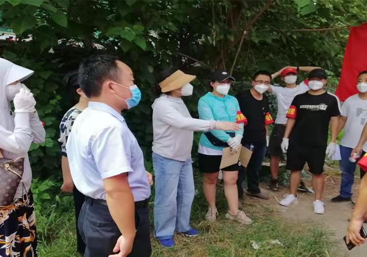 8月11日,古槐街小學(xué)再次支援社區(qū)的防疫工作,征調(diào)10名志愿者,卡點值守社區(qū)的各個居民小區(qū),測溫、掃碼、登記。劉夏當(dāng)天往返十個居民小區(qū),看望志愿者,為他們送去黨組織的關(guān)懷。