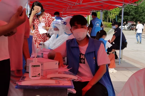 工學(xué)院應(yīng)用電子技術(shù)1901班的張永輝是工學(xué)院學(xué)生六支部預(yù)備黨員。面對(duì)卷土重來的疫情,他堅(jiān)持黨員先行的原則,主動(dòng)加入核酸檢測(cè)志愿服務(wù)隊(duì)伍,協(xié)助醫(yī)護(hù)人員工作,發(fā)揮黨員的先進(jìn)模范帶頭作用,為社會(huì)和廣大人民群眾貢獻(xiàn)一份青春力量!