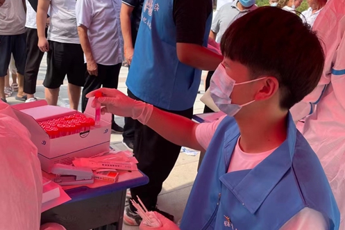 商學(xué)院會(huì)計(jì)學(xué)專業(yè)學(xué)生宋佳同樣也是一名預(yù)備黨員。在看到家鄉(xiāng)發(fā)布的核酸檢測(cè)志愿者召集通告后,她沒有絲毫猶豫,立刻報(bào)名加入到支志愿者隊(duì)伍當(dāng)中。她的主要工作是負(fù)責(zé)維持核酸檢測(cè)現(xiàn)場(chǎng)秩序,協(xié)助開展各項(xiàng)抗疫宣傳工作等。她說:“作為一名預(yù)備黨員,在國家和社會(huì)需要時(shí)候站出來,義不容辭。”