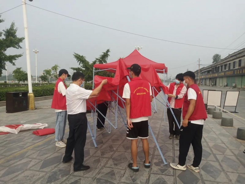 這支志愿者隊(duì)伍是由淮陽中學(xué)劉華東老師組建的。劉華東看到疫情檢測(cè)工作人員人手不夠的實(shí)際情況,就積極動(dòng)員組織返鄉(xiāng)回來的大學(xué)生,參與到志愿者隊(duì)伍中來。這支隊(duì)伍是7月底才組織,8月1日就正式開始服務(wù),短短十幾天,志愿者隊(duì)伍從幾人擴(kuò)大到幾十人。