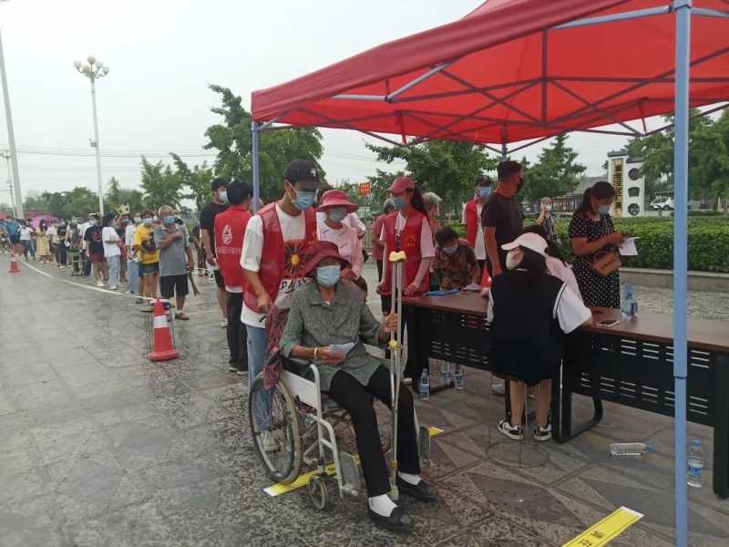 近日,面對(duì)新一輪疫情局部暴發(fā)的態(tài)勢(shì),周口市淮陽區(qū)為嚴(yán)防死守,全民核酸檢測(cè)正式開始。為使核酸檢測(cè)采樣工作有序進(jìn)行,該區(qū)在太昊陵廣場(chǎng)設(shè)置了采集點(diǎn)。在這個(gè)人群隊(duì)伍中,一群身穿“紅馬甲志愿紅”的疫情防控志愿服務(wù)隊(duì)在人群中來回穿梭,不停的配合工作人員開展服務(wù),匯成了全社會(huì)并肩戰(zhàn)疫的暖流,成為疫情防控阻擊戰(zhàn)中一道靚麗的風(fēng)景線。