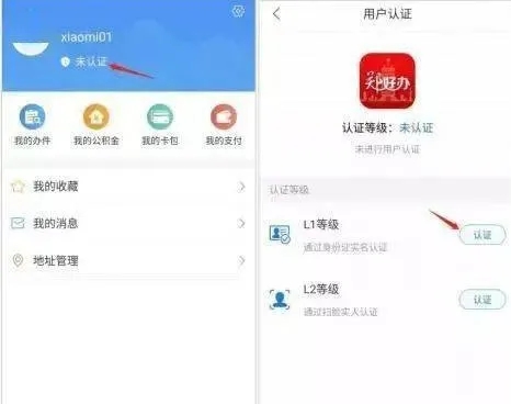 3.根據(jù)頁面提示點擊未認證進行實名認證。