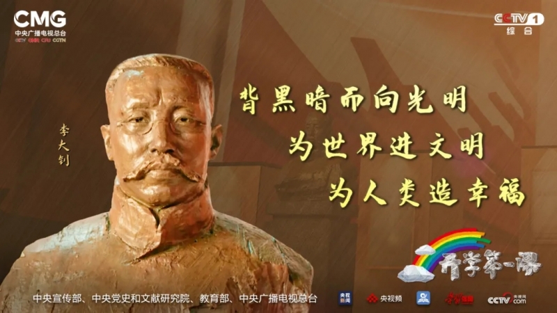 “鐵肩擔(dān)道義,妙手著文章”,在接受《開(kāi)學(xué)第一課》的訪談時(shí),李大釗之孫李亞中說(shuō)到了祖父寫(xiě)的這副對(duì)聯(lián),“這個(gè)‘文章’是講的中華民族的偉大復(fù)興這篇大的‘文章’。”