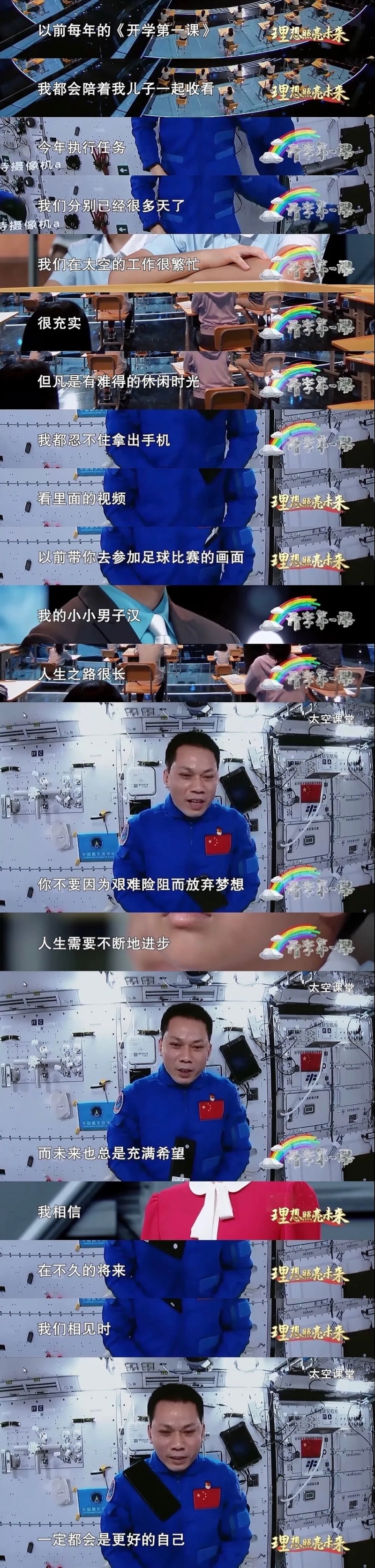 今年的《開(kāi)學(xué)第一課》首次把課堂搬到了太空,通過(guò)“天地連線”,請(qǐng)空間站中的三位航天員為同學(xué)們帶來(lái)特別的一課。