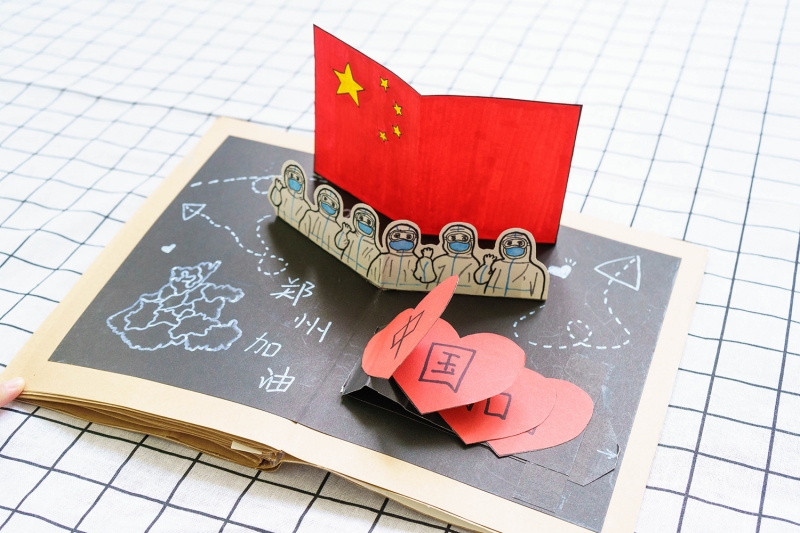 孩子們想要什么樣的開學(xué)第一課,疫情、災(zāi)情以什么樣的形式表現(xiàn)出來孩子更能理解呢?在馮園長的引領(lǐng)下,保教主任張春曉帶領(lǐng)老師們積極開展研討活動,以鄭州“暴雨+疫情”這個不尋常的假期為背景,從最初的幾十個主題,經(jīng)過多次研討,最終決定以立體繪本的形式呈現(xiàn),7本7個主題。讓孩子們正視疫情,珍愛生命,學(xué)會感恩,感受國家力量。