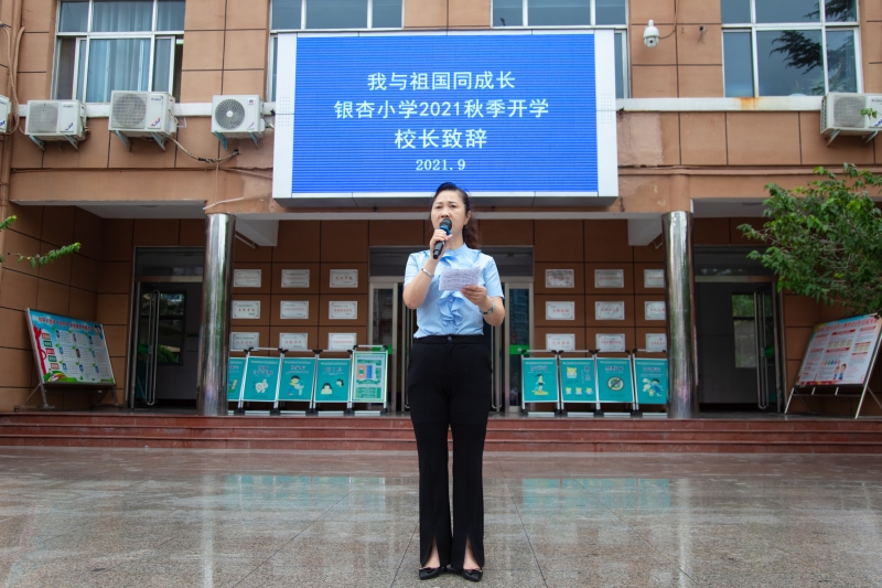 在開學(xué)典禮上,校長張玉芳對暑期工作進(jìn)行了回顧和總結(jié),并對全體師生送上了美好的祝愿,也對大家提出了殷切的希望。她把本屆奧運(yùn)會新修改的格言“更高、更快、更強(qiáng)——更團(tuán)結(jié)”作為開學(xué)寄語送給老師。希望大家調(diào)整心態(tài)、勤學(xué)好問、遵守校規(guī),爭做文明學(xué)生,男生爭做“華華式”小紳士,女生爭當(dāng)“果果式”小淑女。以文明之手,愛護(hù)銀杏校園一草一木,以文明之行,遵守社會公德秩序,扮靚美麗安陽,像銀杏樹一樣昂揚(yáng)向上!