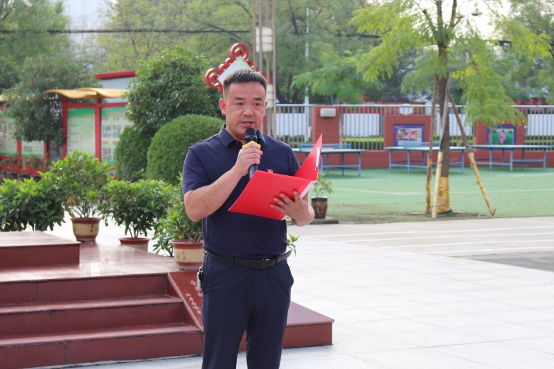 活動中,六一班全體學生朗誦了詩歌《我的祖國》,同學們精神飽滿、激情澎湃,朗誦鏗鏘有力,感染著在場的每一個人。校長王世豪、副校長黃愛梅對創(chuàng)建文明校園工作進行了總結(jié),并向全體師生發(fā)出號召:“積極踐行社會公德,培養(yǎng)良好的文明習慣,共享一片明凈的藍天……”