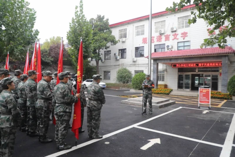 為進(jìn)一步激發(fā)每一位應(yīng)急志愿服務(wù)隊(duì)隊(duì)員的愛(ài)國(guó)熱忱和工作熱情,貫徹落實(shí)縣委、縣政府倡導(dǎo)的“轉(zhuǎn)變工作作風(fēng)、提升工作標(biāo)準(zhǔn)、奮力創(chuàng)先爭(zhēng)優(yōu)”大討論活動(dòng),進(jìn)一步解放思想、轉(zhuǎn)變作風(fēng),樹(shù)立奮發(fā)進(jìn)取、爭(zhēng)先創(chuàng)優(yōu)的新風(fēng)正氣,在工作和生活中做一名政治品質(zhì)過(guò)硬、作風(fēng)紀(jì)律優(yōu)良、思想品德高尚的志愿服務(wù)隊(duì)隊(duì)員,10月11日,封丘縣教體局舉行應(yīng)急志愿服務(wù)隊(duì)升國(guó)旗儀式。局機(jī)關(guān)全體應(yīng)急志愿服務(wù)隊(duì)隊(duì)員統(tǒng)一穿著迷彩服套裝參加升旗儀式。