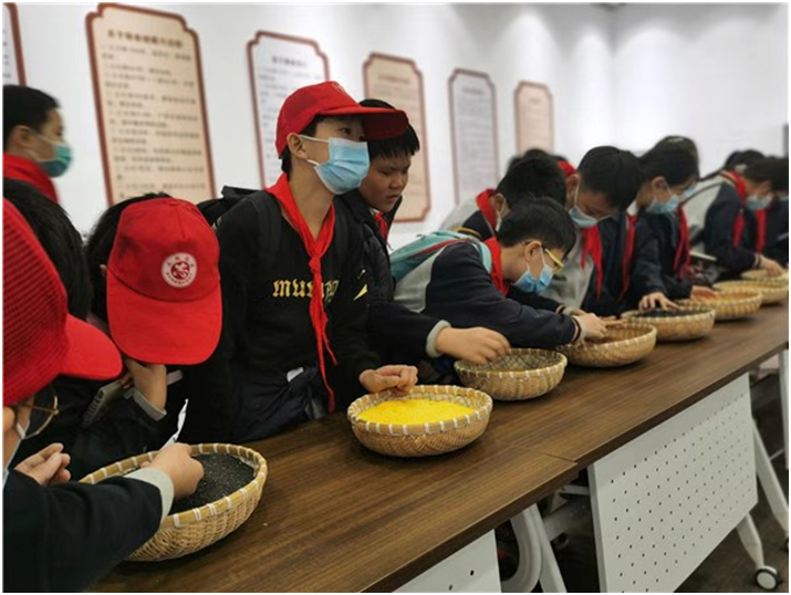 在河南糧食宣教館,同學(xué)們通過(guò)觀看視頻、聆聽宣講、親手觸摸等方式了解糧食現(xiàn)狀、糧食知識(shí)、節(jié)糧意義;在淺圓倉(cāng)、平房倉(cāng)、立儲(chǔ)倉(cāng)等大型糧倉(cāng)現(xiàn)場(chǎng),孩子們近距離感受空調(diào)控溫、智能通風(fēng)、谷物冷卻等綠色儲(chǔ)糧新技術(shù),了解糧食儲(chǔ)藏、除蟲、防潮、恒溫等方法,接觸到糧食收購(gòu)系統(tǒng)、遠(yuǎn)程監(jiān)控系統(tǒng)、儲(chǔ)量運(yùn)輸系統(tǒng)、地籠通風(fēng)等“黑科技”。親手觸摸到一粒粒糧食,孩子們顯得特別興奮:“原來(lái)稻谷是這個(gè)樣子呀!”“以前只知道農(nóng)民伯伯種糧食很辛苦,沒想到儲(chǔ)備糧食也這么不容易。食為政首,糧安天下。以后吃飯的時(shí)候一定要吃多少盛多少,不能浪費(fèi)。”