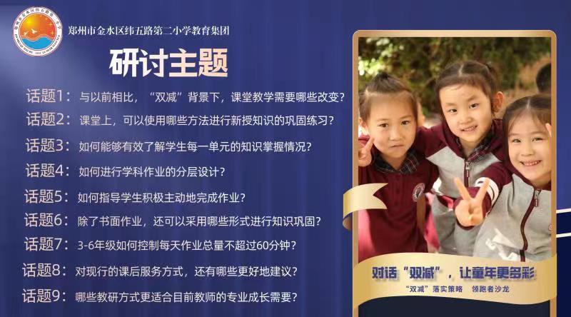 隨著“雙減”政策的頒布,校外,教培時代宣告結束,校內(nèi),未來教育形式方興未艾。身處“風暴”中心的公辦學校校長、教師,既要謀劃“減法”之后孩子如何成長的新規(guī)劃,又要面臨“加法”之下課程內(nèi)容、課堂結構、課后服務、家校共建的新課題。如何逆風向前、速度不減地跑出一場屬于教育人“雙減”之下的馬拉松?2021年11月11日,鄭州市金水區(qū)緯五路第二小學教育集團組織召開“雙減”落實策略研討會,校長、年級長、教師匯聚一堂,舉行了一場“雙減”思辨圓桌會。