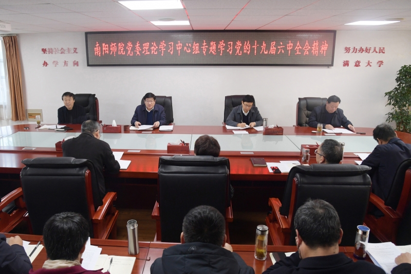 11月15日,南陽(yáng)師范學(xué)院黨委理論學(xué)習(xí)中心組在辦公大樓三樓會(huì)議室召開(kāi)專(zhuān)題學(xué)習(xí)會(huì),集中學(xué)習(xí)黨的十九屆六中全會(huì)精神。校黨委書(shū)記盧志文主持會(huì)議,校黨委中心組全體成員參加學(xué)習(xí)會(huì)。
