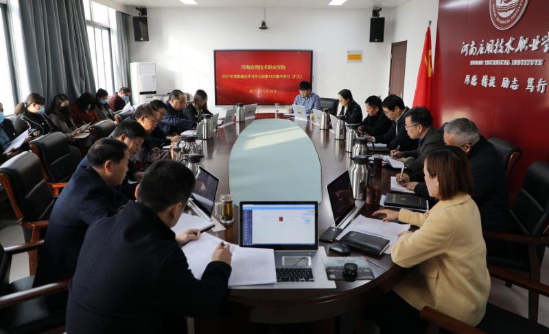 11月16日,河南應(yīng)用職業(yè)技術(shù)學(xué)院黨委理論學(xué)習(xí)中心組召開擴(kuò)大學(xué)習(xí)會(huì)議,專題學(xué)習(xí)了黨的十九屆六中全會(huì)精神。校黨委書記閆俊山主持會(huì)議,黨委理論學(xué)習(xí)中心組成員、部分黨總支書記參加會(huì)議。