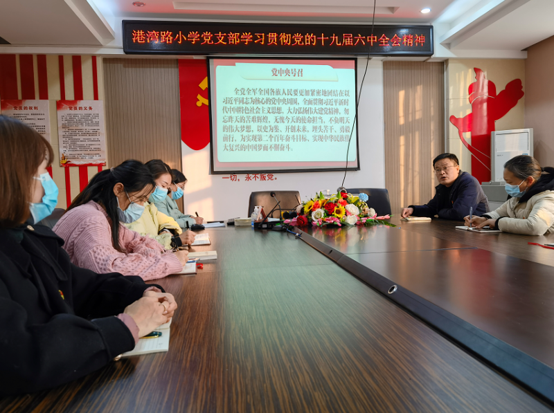 11月16日下午,鄭州市管城區(qū)港灣路小學黨支部開展“4+x”主題黨日活動,集中學習貫徹黨的十九屆六中全會精神。