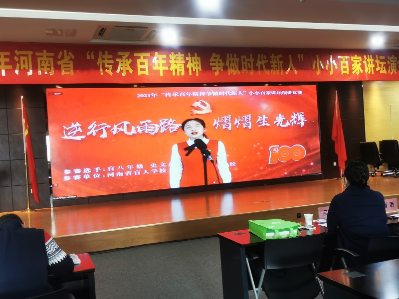 “小小百家講壇”是河南省教育廳為熱烈慶祝中國共產(chǎn)黨成立100周年,引導(dǎo)廣大中小學(xué)師生學(xué)習(xí)“四史”,在全省中小學(xué)開展的“從小學(xué)黨史,永遠(yuǎn)跟黨走”主題教育活動之一。2021年“傳承百年精神,爭做時(shí)代新人”小小百家講壇演講比賽以學(xué)生撰稿,進(jìn)行主題演講的形式開展。該活動旨在引導(dǎo)全省中小學(xué)師生學(xué)習(xí)了解中國共產(chǎn)黨一百年來領(lǐng)導(dǎo)人民創(chuàng)造的偉大歷史,學(xué)習(xí)習(xí)近平總書記用過的典故,學(xué)習(xí)紅色精神,引導(dǎo)青少年學(xué)子爭做人格健康、品質(zhì)良好、堪當(dāng)民族復(fù)興大任的時(shí)代新人。“小小百家講壇”活動至今已舉辦七年,影響和帶動了更多的青少年學(xué)習(xí)習(xí)近平新時(shí)代中國特色社會主義思想,學(xué)習(xí)“四史”,是我省紅色教育的經(jīng)典活動品牌。