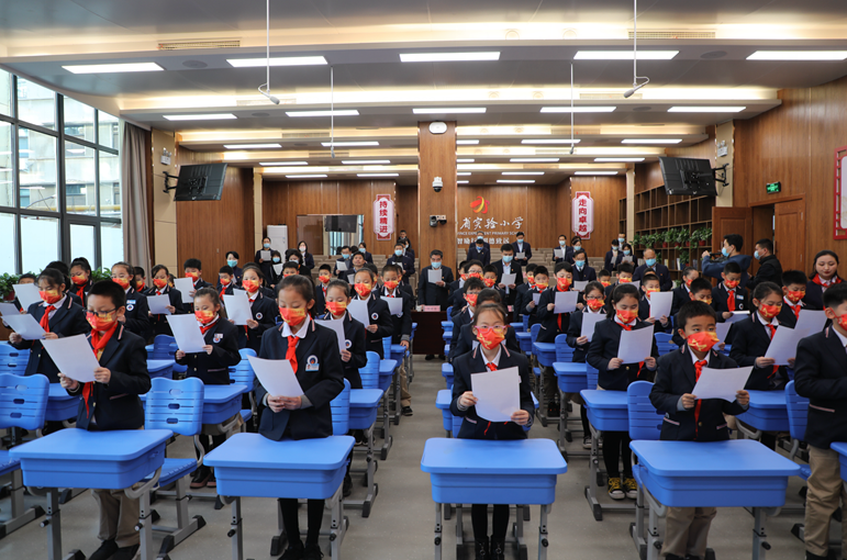 “紅旗長揚,我們迎著朝陽;成長路上,聆聽?wèi)椃ㄐ蹓训穆曧憽!痹谥鲿觯F(xiàn)場師生代表齊唱憲法主題歌曲《憲法伴我們成長》,從優(yōu)美的歌聲中體會憲法溫度、感受憲法力量。