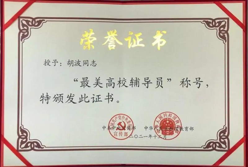 2021年全國“最美高校輔導員”新鮮出爐,全國10人,鄭州大學輔導員胡波上榜,實現(xiàn)了河南省高校輔導員該榮譽“零的突破”。