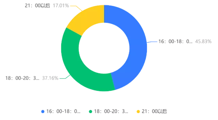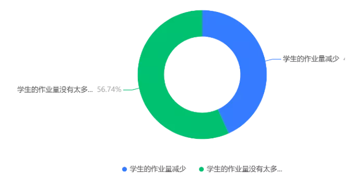 從作業(yè)的數(shù)量來看,學生的作業(yè)量沒有太多變化,“和以前差不多”占比56.74%(有3775人),明顯多于學生的作業(yè)量減少(43.26%);在學生放學時間及教師下班時間方面,下午18:00放學及20:30放學成為主要的放學時段,教師下班時間也相對應的集中于18:00—20:00。