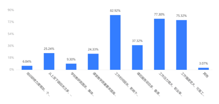 由此可見,教師的壓力已由教育教學、班級管理下移至非教學的事務性工作中。