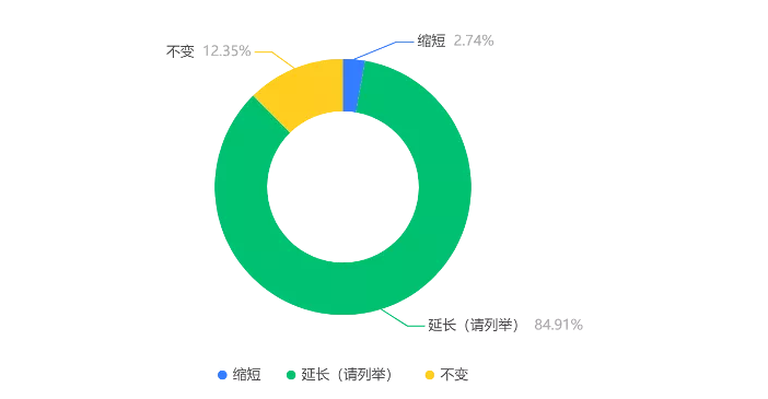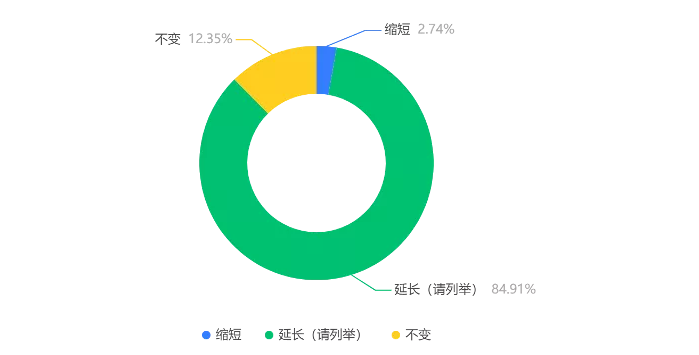 從工作時間的角度來看,覺得工作時間延長的占比為84.91%(5649人),覺得工作時間不變的占比12.35%(822人),覺得工作時間縮短的占比為2.74%(182人)。