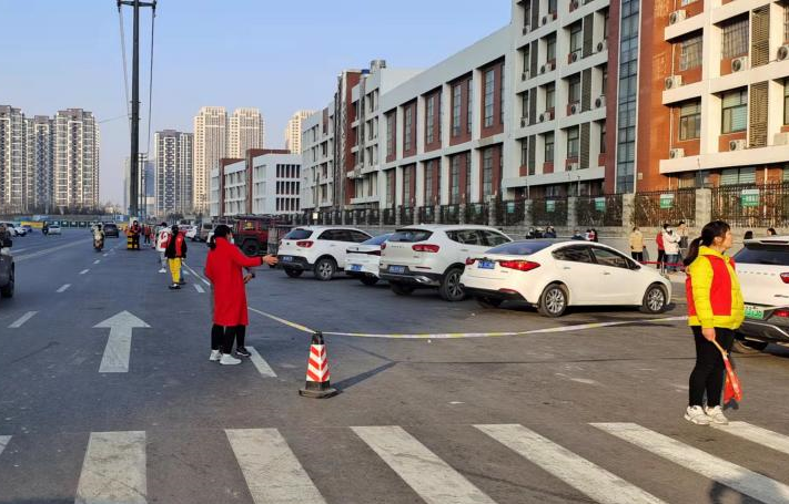 在鄭州麗水外國語學校學生出行的道路上,總能看到一群盡心盡責的家長志愿者與老師們,他們穿著統(tǒng)一的志愿服,手持紅旗,分布在各個交通要點,保障道路暢通、提醒文明停車,為學生的安全出行保駕護航。