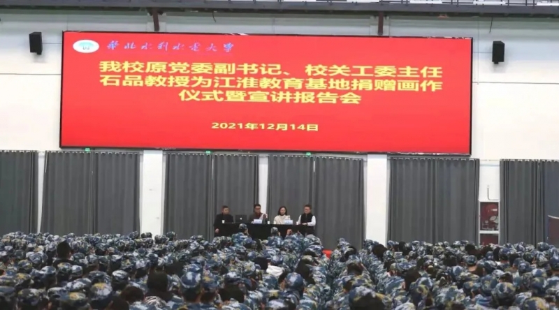 12月14日-15日,華北水利水電大學(xué)原黨委副書記、校關(guān)工委主任石品教授為江淮教育基地捐贈(zèng)畫作儀式暨宣講報(bào)告會(huì)在江淮教育基地體訓(xùn)館順利舉行。華北水利水電大學(xué)副校長、江淮教育基地管理委員會(huì)黨委書記、主任劉盤根,江淮教育基地管理委員會(huì)黨委副書記、副主任兼綜合辦公室主任徐震,華北水利水電大學(xué)馬克思主義學(xué)院黨委書記張梅,江淮教育基地清源書院院長王峰、善水書院院長孟治剛,華北水利水電大學(xué)黨委學(xué)生工作部副部長胡德朝,江淮教育基地管理委員會(huì)各職能部門負(fù)責(zé)人及全體工作人員,在江淮教育基地進(jìn)行工作的各學(xué)院黨委副書記及育人導(dǎo)師,在江淮教育基地進(jìn)行軍訓(xùn)、學(xué)習(xí)的2021級的第二批全體學(xué)生參加了活動(dòng)。活動(dòng)由華北水利水電大學(xué)黨委學(xué)生工作部部長曹震主持。