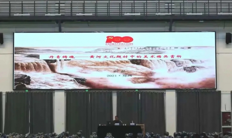 會(huì)上,石品教授以“丹青鑄魂——黃河文化題材中的美術(shù)精品賞析”為主題,從黃河文化題材的創(chuàng)作入手,詳細(xì)分享講解了中國畫、油畫、版畫、雕塑等不同形式體現(xiàn)黃河文化題材的美術(shù)精品,充分展示了黃河文化、黃河精神的博大精深與繪畫藝術(shù)的獨(dú)特之美,報(bào)告催人奮進(jìn),鼓舞人心,師生們深深被報(bào)告中的黃河故事、黃河歷史、黃河人物、黃河文化所反映的中華民族不屈不撓、用于抗?fàn)帯⒆詮?qiáng)不息的民族精神深深震撼,不時(shí)爆發(fā)出熱烈的掌聲。