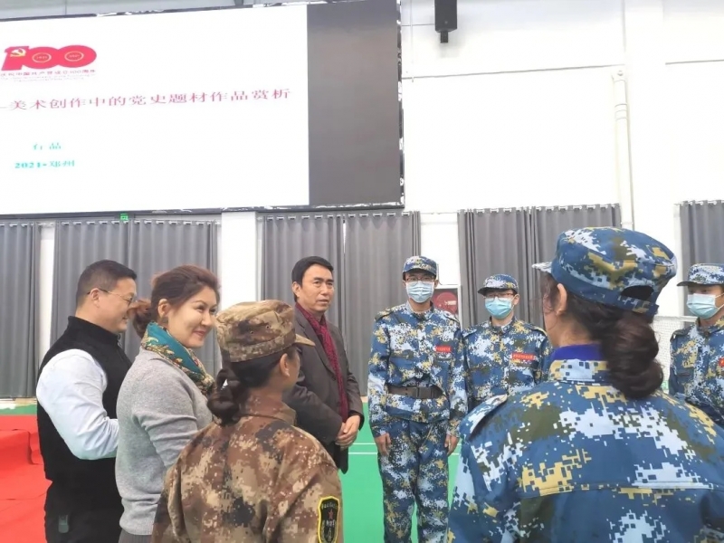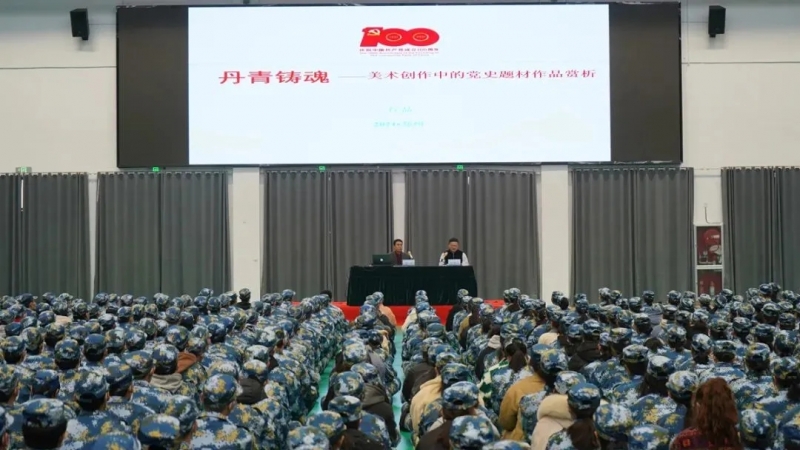 15日上午8點(diǎn)30分,石品教授還做了第二場報(bào)告“丹青鑄魂——美術(shù)創(chuàng)作中的黨史題材作品賞析”。石品教授以當(dāng)前在全國深入進(jìn)行的黨史學(xué)習(xí)教育活動(dòng)為時(shí)代背景,通過分享講解中國共產(chǎn)黨成立各個(gè)歷史時(shí)期以及十八大以后黨史題材具有代表性的美術(shù)經(jīng)典作品,向師生們生動(dòng)地再現(xiàn)了中國共產(chǎn)黨成立一百年來各個(gè)歷史時(shí)期的重大事件與杰出人物,藝術(shù)化地展現(xiàn)了中國共產(chǎn)黨帶領(lǐng)中國人民篳路藍(lán)縷、艱苦奮斗的光輝歷程、偉大壯舉。