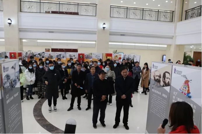 開幕式后全體師生參觀《馬克思主義為什么行》展覽,此次展覽由青馬會“知行青馬”紅色志愿講解團(tuán)成員負(fù)責(zé)講解。