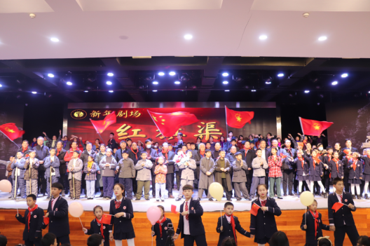 演出結(jié)束后,全體少先隊(duì)員在中國(guó)少年先鋒隊(duì)隊(duì)旗的引領(lǐng)下,唱著隊(duì)歌,走上舞臺(tái),表達(dá)了世紀(jì)少年堅(jiān)持做共產(chǎn)主義接班人,以及深入學(xué)習(xí)和大力弘揚(yáng)紅旗渠精神的堅(jiān)定決心!