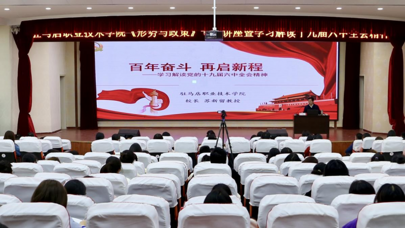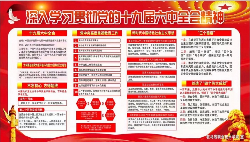 新時(shí)代呼喚新作為,新時(shí)代需要新?lián)?dāng)。駐馬店職業(yè)技術(shù)學(xué)院以四學(xué)模式整合力量,把學(xué)習(xí)宣傳貫徹黨的十九屆六中全會(huì)精神引向深入,從黨的百年歷史經(jīng)驗(yàn)中汲取奮發(fā)進(jìn)取的動(dòng)力和智慧力量,用全會(huì)精神凝聚共識(shí)、引領(lǐng)行動(dòng)。站在“兩個(gè)一百年”奮斗目標(biāo)的歷史交匯點(diǎn)上,駐馬店職業(yè)技術(shù)學(xué)院將以更加昂揚(yáng)的姿態(tài)邁進(jìn)新征程,建功新時(shí)代,實(shí)現(xiàn)新作為。