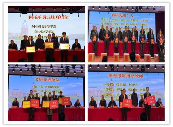 隨后,副校長姜德剛宣讀了《安陽學院關于表彰2021年度考研先進單位及優(yōu)秀指導教師的決定》等文件,副校長馬保建宣讀了《安陽學院關于表彰2021年度科研先進單位及先進個人的決定》,副校長、黨委副書記張宇宣讀了《安陽學院本科生考研獎勵及專項經(jīng)費使用暫行辦法》,副校長張明選宣讀了《安陽學院科研獎勵辦法》,紀委書記、工會主席、校長助理王飛宣讀了《安陽學院科研經(jīng)費管理辦法》《安陽學院科研項目配套經(jīng)費管理辦法》。與會各位領導為獲獎的單位和個人進行了頒獎。外國語學院任志芬、計算機科學與技術學院張紅軍、航空工程學院王曉光、文學與傳媒學院管世超分別進行交流發(fā)言。