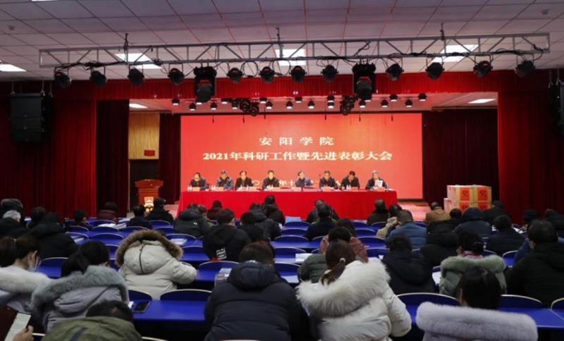 近日,安陽學院2021年度科研工作暨先進表彰大會在綜合樓報告廳舉行。校領導賀海鵬、王愛民、姜德剛、馬保建、張宇、張明選、王飛等出席會議。校學術委員會委員、相關職能部門負責人、各教學單位負責人、教研室主任、獲獎教師等130余人參加會議。大會由科研處處長王海平主持。