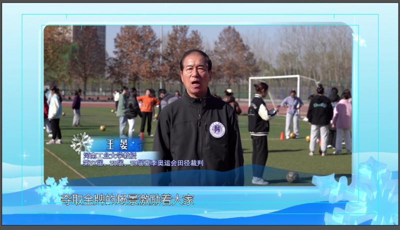 2021年12月31日,中國教育電視臺主辦的《冰雪之約:一起向未來青春歌會》首播,河南工業(yè)大學原創(chuàng)作品《光點》作為河南唯一代表,和首都師范大學、國防科技大學等15家高校同臺演出。三屆奧運會裁判、河南工業(yè)大學體育學院王晏教授和“一帶一路”國家留學生一起,寄語北京冬奧會、冬殘奧會。