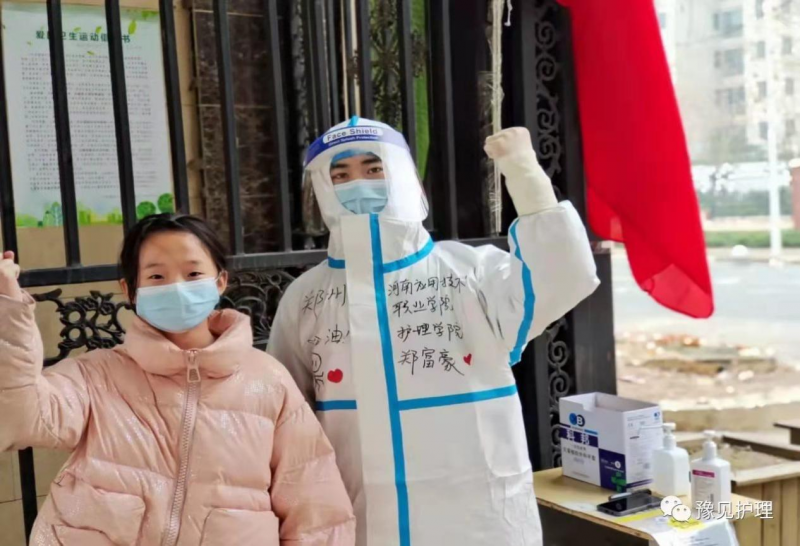 護(hù)理學(xué)院2001班的鄭富豪,每天他都早早來到核酸采樣點(diǎn)。穿戴好防護(hù)服后被分配到醫(yī)護(hù)人員身邊,協(xié)助他們完成試劑準(zhǔn)備、粘貼樣本條碼等工作,并通過上門服務(wù)的形式,對(duì)居家隔離、腿腳不便的人群協(xié)助入戶做核酸檢測。同時(shí),還采取流動(dòng)核酸采樣的形式,在轄區(qū)街道通過流動(dòng)車進(jìn)行流動(dòng)核酸檢測宣傳與采樣,認(rèn)真把好每一道關(guān),確保核酸檢測工作順利進(jìn)行。“疫情是次大考,我將在歷練中成為更好的自己,相信堅(jiān)強(qiáng)的鄭州定能度過難關(guān)!”鄭富豪說。